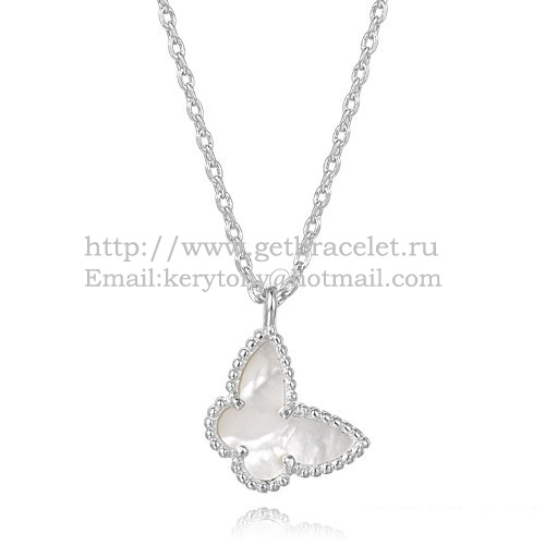 Van Cleef Arpels Collier papillon Lucky Alhambra en or blanc avec nacre blanche