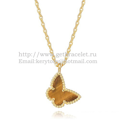 Van Cleef Arpels Collier Papillon Lucky Alhambra Or Jaune Avec Oeil De Tigre Nacre