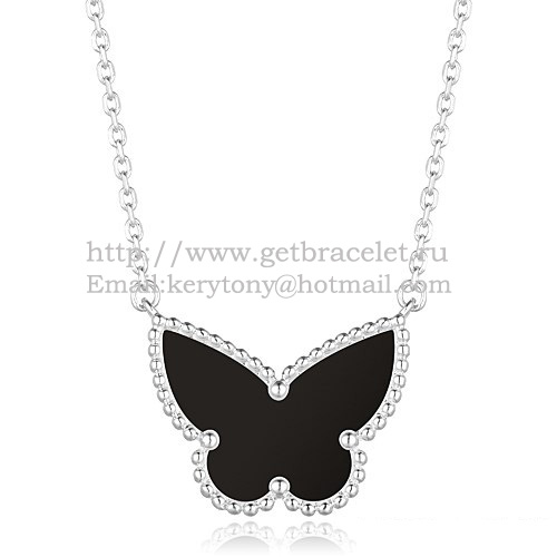Van Cleef Arpels Lucky Alhambra Butterfly Pendentif Or Blanc Avec Onyx Noir Nacre