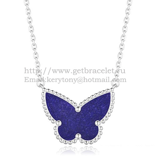 Van Cleef Arpels Pendentif Papillon Lucky Alhambra Or Blanc Avec Pierre Lapis Nacre