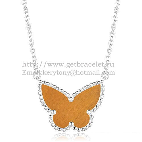 Van Cleef Arpels Pendentif Papillon Lucky Alhambra Or Blanc Avec Oeil De Tigre Nacre