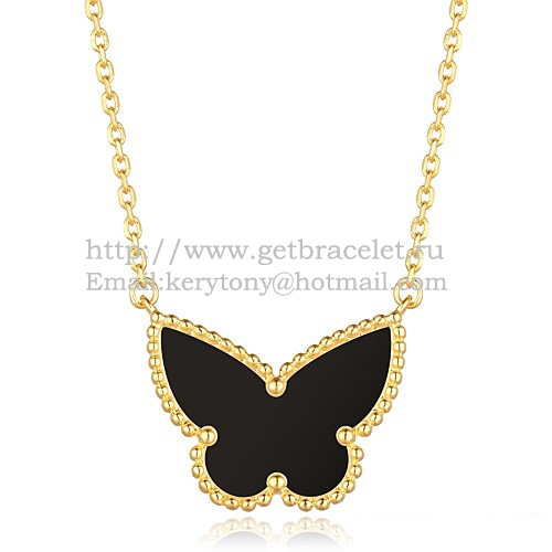 Van Cleef Arpels Pendentif Papillon Lucky Alhambra Or Jaune Avec Onyx Noir Nacre