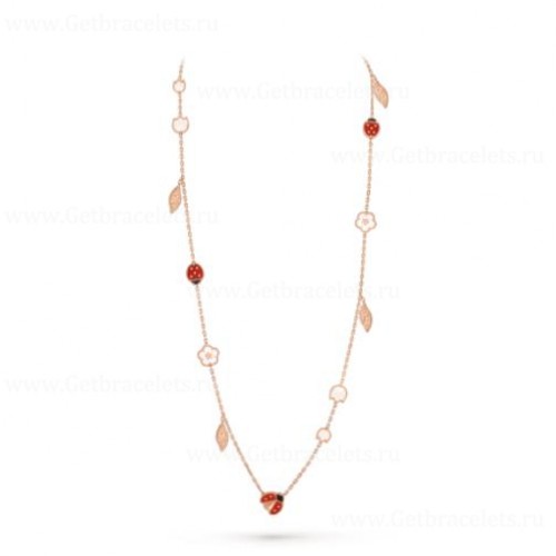 Van Cleef Arpels Sautoir Lucky Or Rose Cornaline et Nacre Onyx 15 Motifs