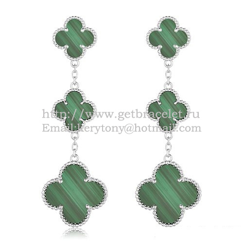Van Cleef Arpels Boucles d'oreilles Magic Alhambra 3 motifs or blanc avec malachite