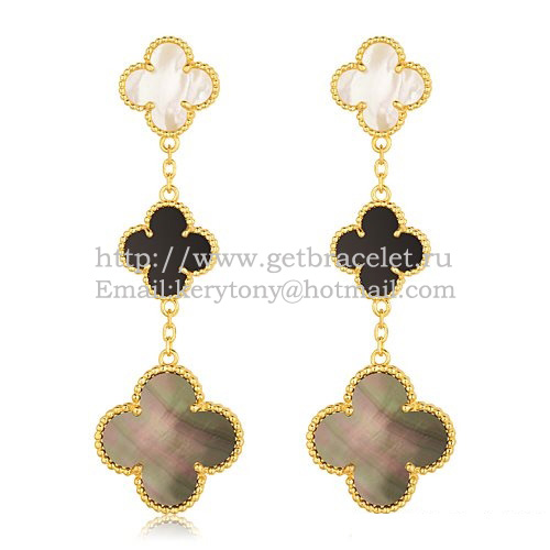 Van Cleef Arpels Boucles D'oreilles Magic Alhambra 3 Motifs Or Jaune Avec Combinaison De Pierres