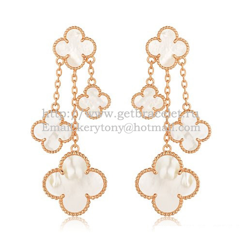 Van Cleef Arpels Boucles D'oreilles Magic Alhambra 4 Motifs Or Rose Avec Nacre Blanche