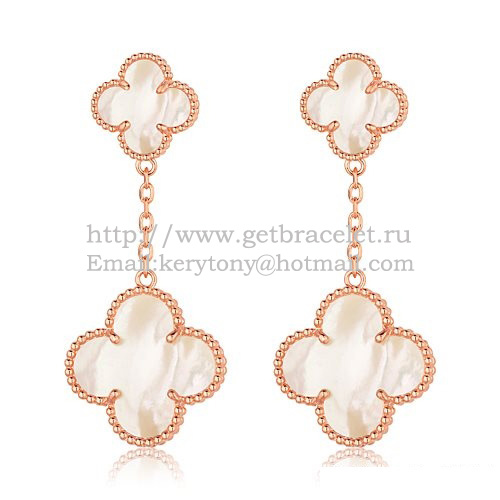 Van Cleef Arpels Boucles d'oreilles Magic Alhambra en or rose avec nacre blanche
