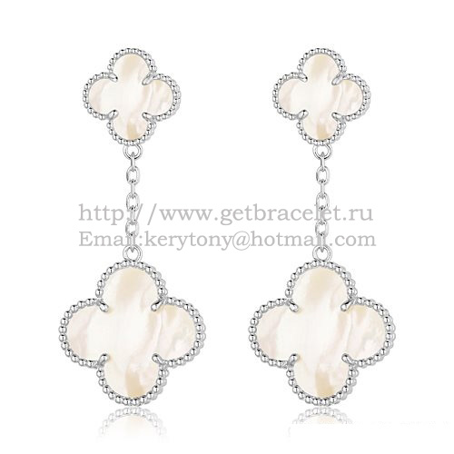 Van Cleef Arpels Boucles d'oreilles Magic Alhambra en or blanc avec nacre blanche