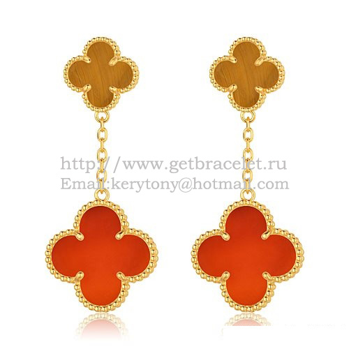 Van Cleef Arpels Boucles d'oreilles Magic Alhambra en or jaune avec cornaline oeil de tigre