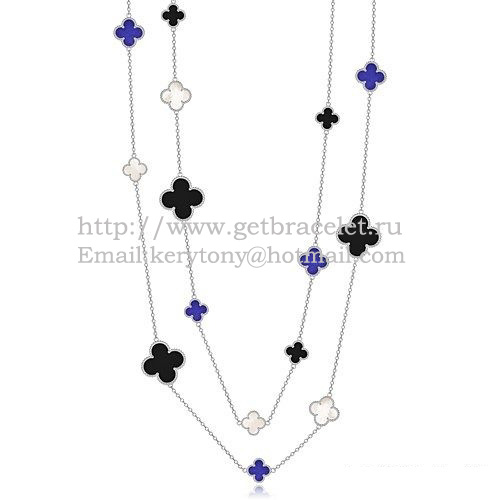 Van Cleef Arpels Collier Magic Alhambra Or Blanc 16 Motifs Avec Onyx Noir Lapis Nacre Blanche