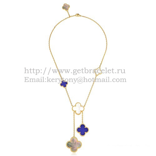 Van Cleef Arpels Collier Magic Alhambra Or jaune 6 motifs avec nacre lapis blanc gris