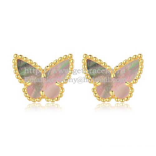 Van Cleef Arpels Boucles d'oreilles papillon Sweet Alhambra en or jaune avec nacre grise