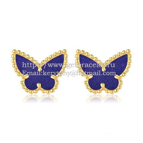 Van Cleef Arpels Boucles d'oreilles papillon Sweet Alhambra en or jaune avec pierre de lapis et nacre