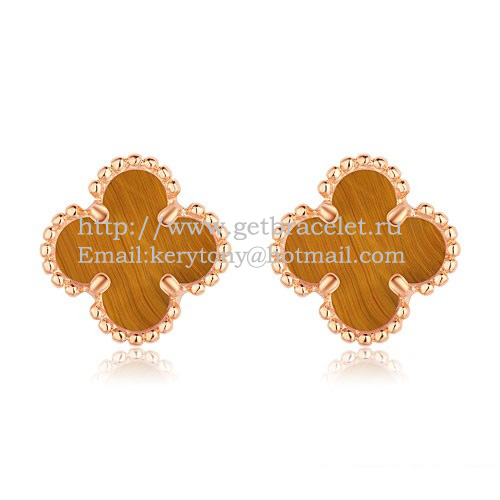 • Van Cleef Arpels Boucles D'oreilles Sweet Alhambra Or Rose Avec Oeil De Tigre Nacre