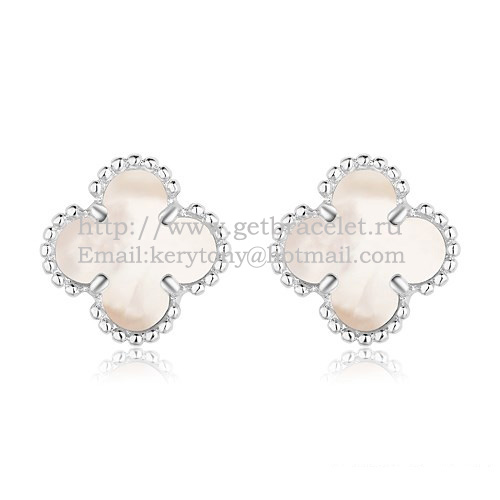 Van Cleef Arpels Boucles d'oreilles Sweet Alhambra Or blanc avec nacre blanche