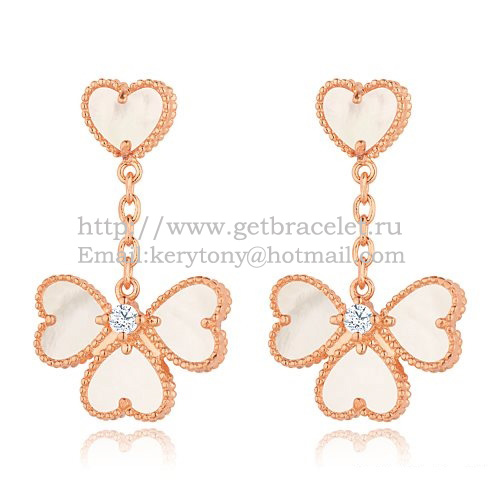 Van Cleef Arpels Boucles d'oreilles Sweet Alhambra Effeuillage Or rose avec nacre blanche