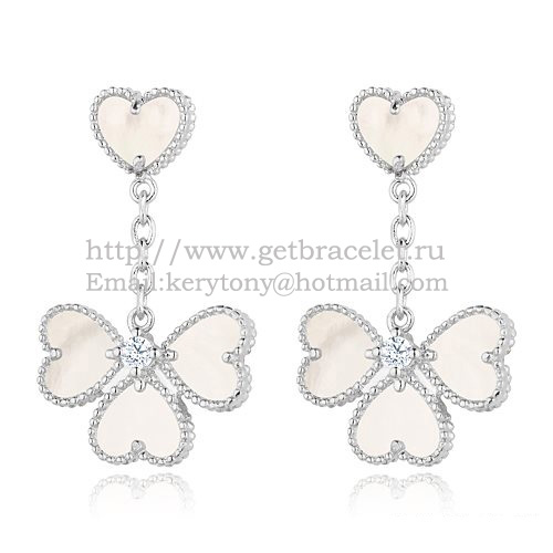Van Cleef Arpels Boucles d'oreilles Sweet Alhambra Effeuillage Or blanc avec nacre blanche