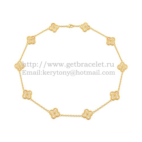 Van Cleef Arpels Collier Sautoir Alhambra En Or Jaune 10 Motifs Avec Pavé De Diamants