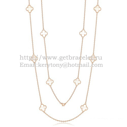 Van Cleef Arpels Collier Alhambra Or Rose 10 Motifs Avec Nacre Blanche