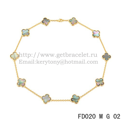 Van Cleef Arpels Collier Alhambra Or Jaune 10 Motifs Nacre Grise 45cm