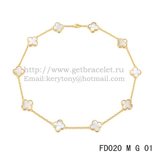 Van Cleef Arpels Collier Alhambra Or Jaune 10 Motifs Nacre Blanche 45cm