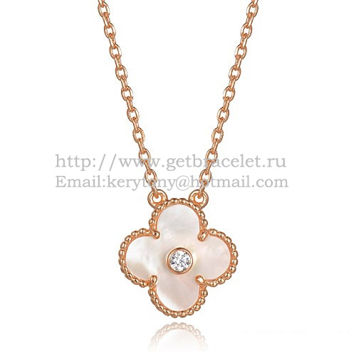 Van Cleef Arpels Pendentif Alhambra en or rose avec nacre blanche et diamants ronds
