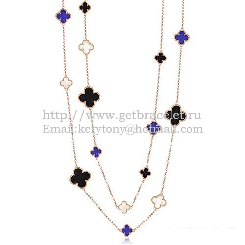 Van Cleef Arpels Collier Magic Alhambra Or Rose 16 Motifs Avec Onyx Noir Lapis Nacre Blanche