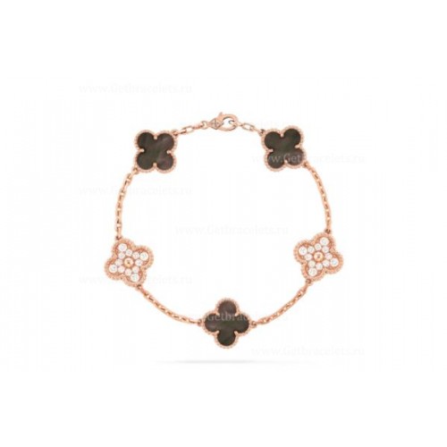 Van Cleef Arpels Bracelet Alhambra 5 motifs avec diamants et nacre grise